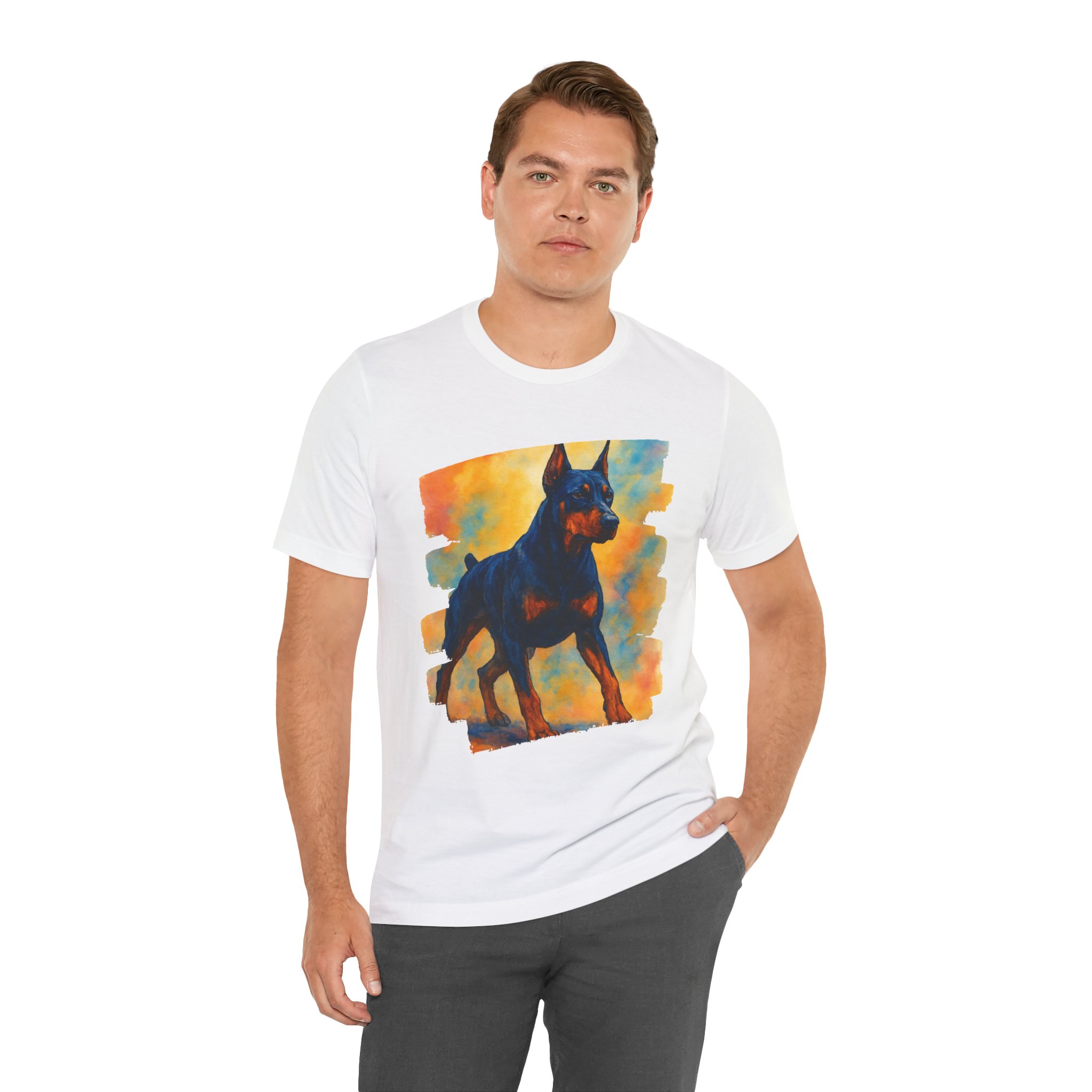Doberman Art Tee — Watercolor Dog Graphic T-Shirt