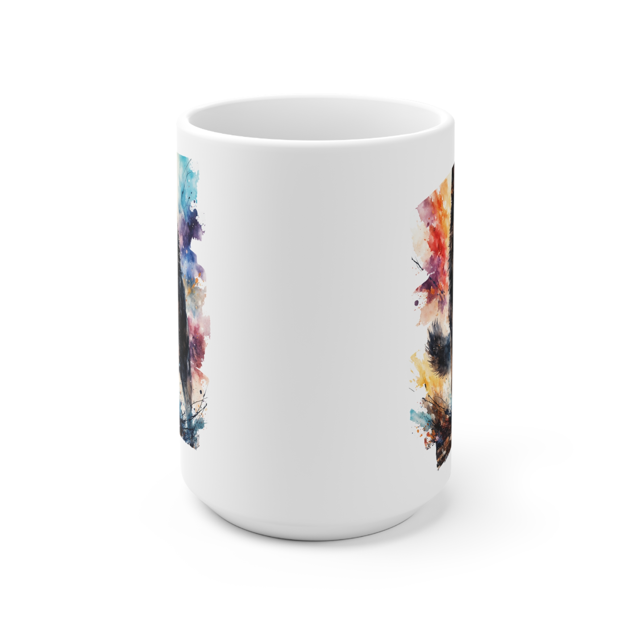 Morning light warms porcelain and a splash of color brings a wagging heart to the table. This ceramic mug features a bold, painterly German Shepherd design that reads like a small portrait — vivid hues wrap the cup so the image follows you with every sip. It sits comfortably in hand thanks to a generous C-handle and rounded silhouette. Use it for slow weekend brews or quick weekday coffees; the sturdy ceramic feels familiar, while the artwork adds a lively, companionable note to your routine. For people who live with or love German Shepherds, this mug turns ordinary moments — a commute mug on the train, a desk-side pick-me-up, a quiet morning on the porch — into a small, joyful ritual.